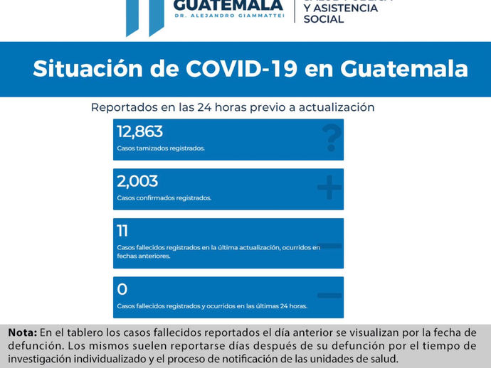 El Ministerio de Salud informa: registró de las últimas 24 horas, hay 2,003 nuevos casos de COVID-19; además, 11 fallecidos ocurridos en...