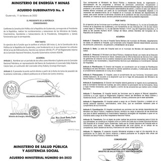 El Ministerio de Salud Pública y Asistencia Social, publicó en el diario oficial el Acuerdo Ministerial 84-2022 con el cual se crea el Hospital de Santa Barbara, del municipio de Morales, Izabal.